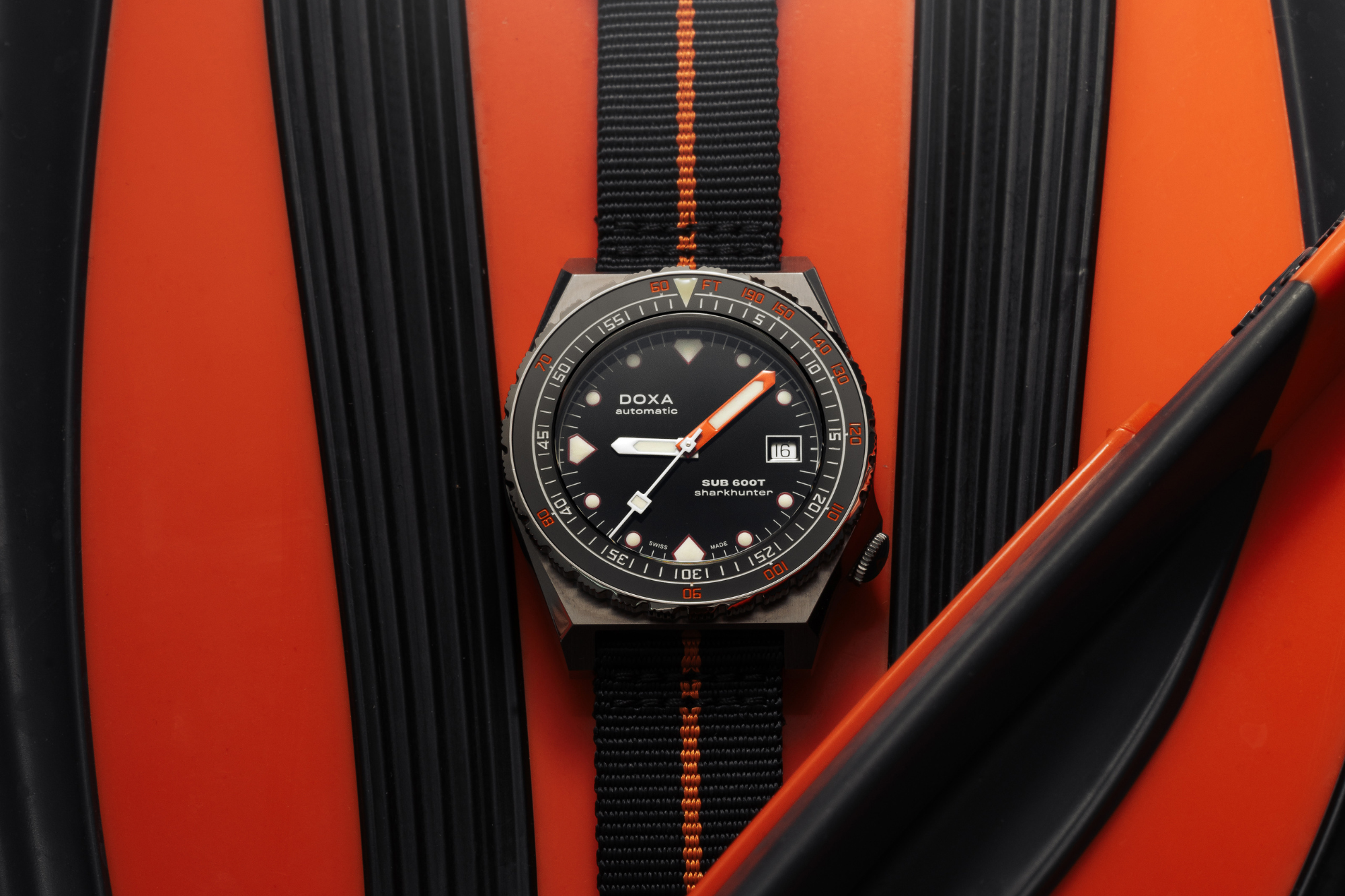 NATO strap with pin buckle, Black & Orange